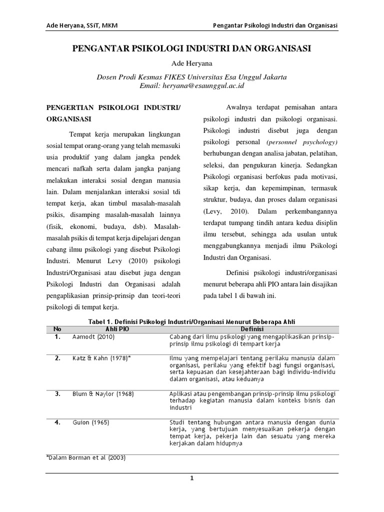Ade Heryana Pengatar Psikologi Industri Ganjil 2016 Pdf