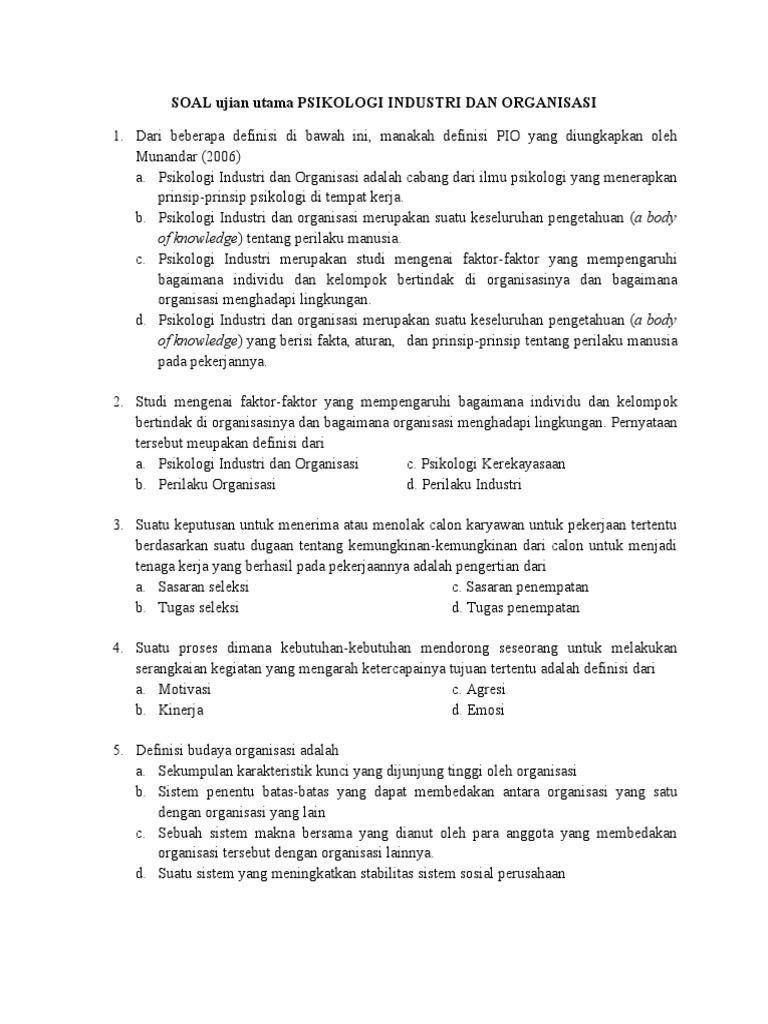 Soal Soal Psikologi Industri Dan Organisasi Pertemuan 1 Amp 2